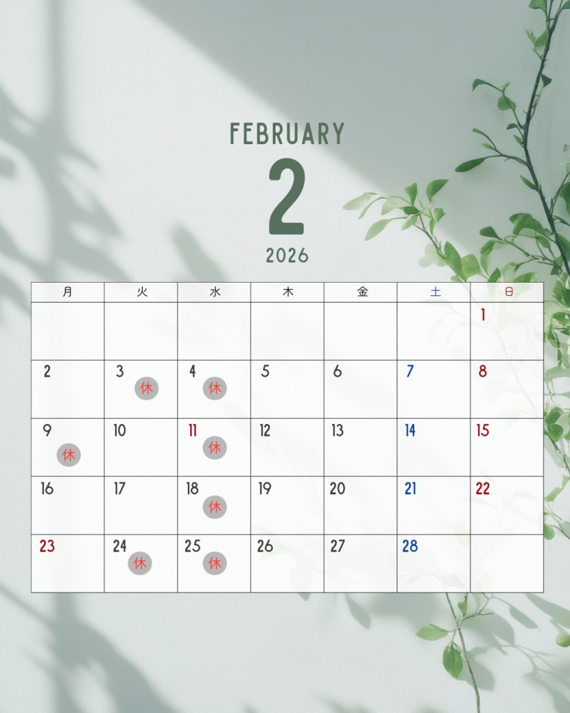 2月は研修参加のため、通常よりお休みが多くなります。